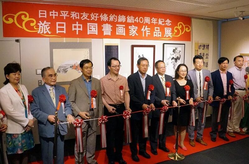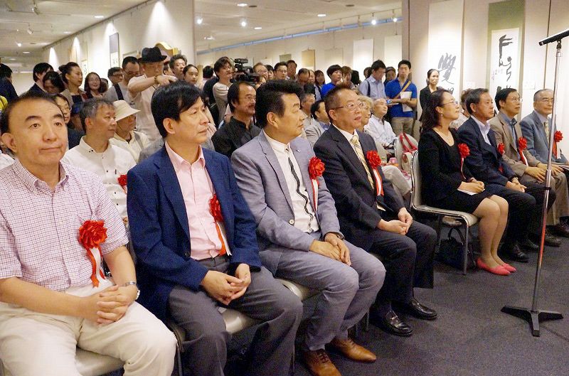 中国驻日本大使馆文化担当贺怡兰、全日本华侨华人联合会名誉会长颜安、全日本华侨华人联合会会长刘洪友、日中友好会馆中方代表理事郑祥林、中国留日同学总会会长汪先恩、全日本华侨华人联合会副会长王子江、全日本华人书法家协会主席晋鸥、日本中华文学艺术联合会会长陈允陆、日本著名画家、日展评议委员藤岛博文、日本中国文化艺术交流协会会长韩晓清等嘉宾出席了当天的开幕式并致辞。